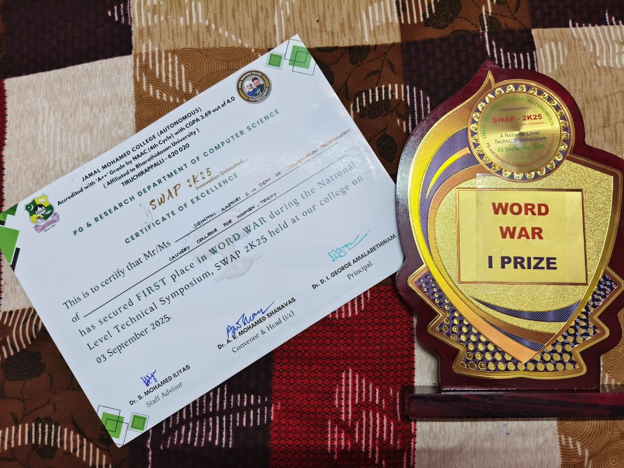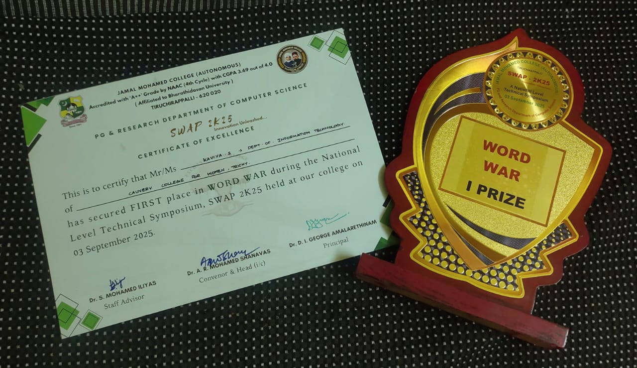 Ms.S.SRINITHI KASTHURI won I Prize in Word War